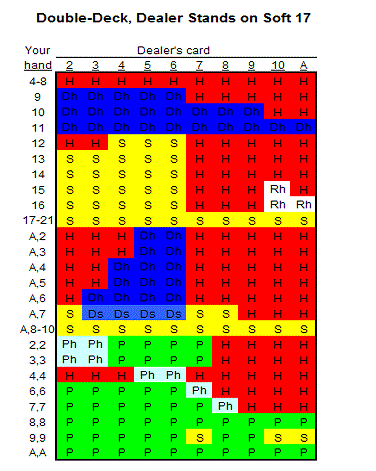 The table contains the best decisions and actions you can make and take in every possible situation. They are called Basic Double Deck Strategy Player Tables because they only take into account the information available for one round: your two cards, the dealer’s face-up card, and your choice of how to play Blackjack.