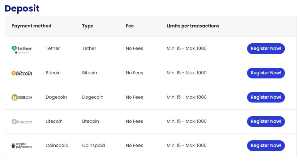 - Fifth deposit gets a 100% bonus.