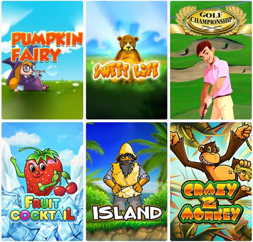 - Slots (Crazy Monkey, Fruit Cocktail, Book of Dead, Sweet Life, etc.)