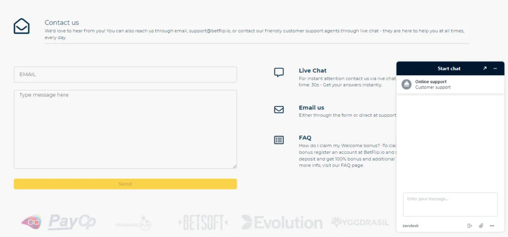 You can reach out to Betflip’s help desk in two simple ways. Look for the Chat icon at the lower right side of the screen. Just write your note and hit it to talk to the support person. The Support page also lets you send a standard note. You’ll need to type in your email and the text you want to send. Replies come to your given email. The support team checks each case with care. Thanks to their training and calm ways, they fix problems fast. Feel free to ask questions about the bookie’s work, their offers, or anything else using chat or the form.
