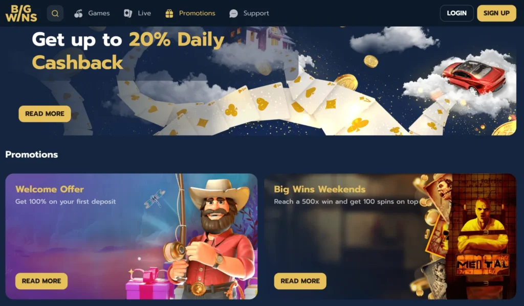 The welcome perk is cool, but the cashback deal really brings in careful players. Say hi to Big Wins’ sweet 20% money-back deal when you bet on their site. This deal gives you a set part of your lost bets back, with zero play rules.