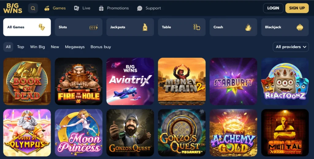 - Online Gaming Section at Big Wins Casino