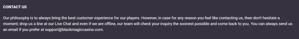 - Customer support at Black Magic Casino