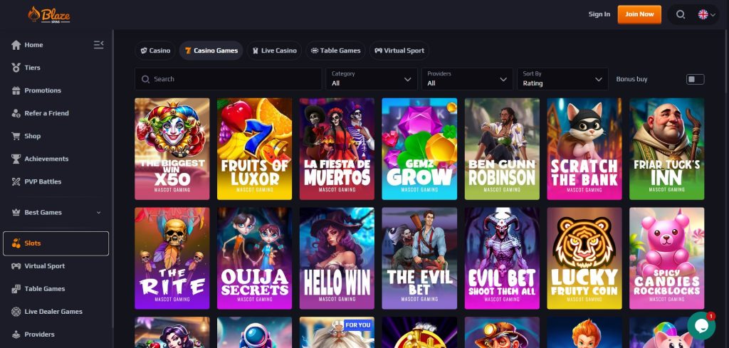 Blaze Spins Casino offers over 10,000 games, combining quantity with quality. Players can enjoy everything from classic slot machines to modern live dealer experiences and virtual sports, all provided by trusted studios.