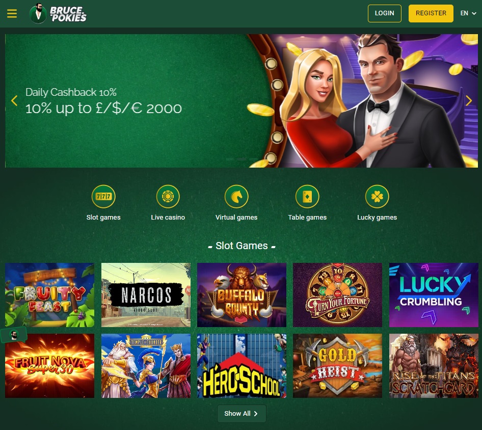 Bruce Pokies is a great online casino with lots of games, good bonuses, and an easy interface. It works with top game makers to offer the newest and most fun games.