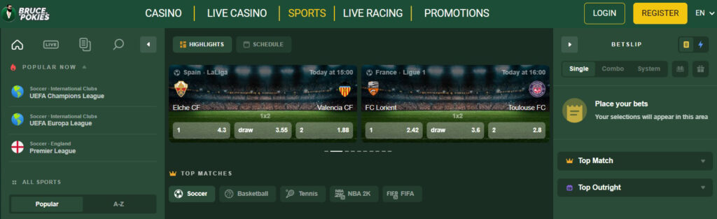 Yes, Bruce Pokies offers a sports betting section where players can bet on a variety of sports events and matches.