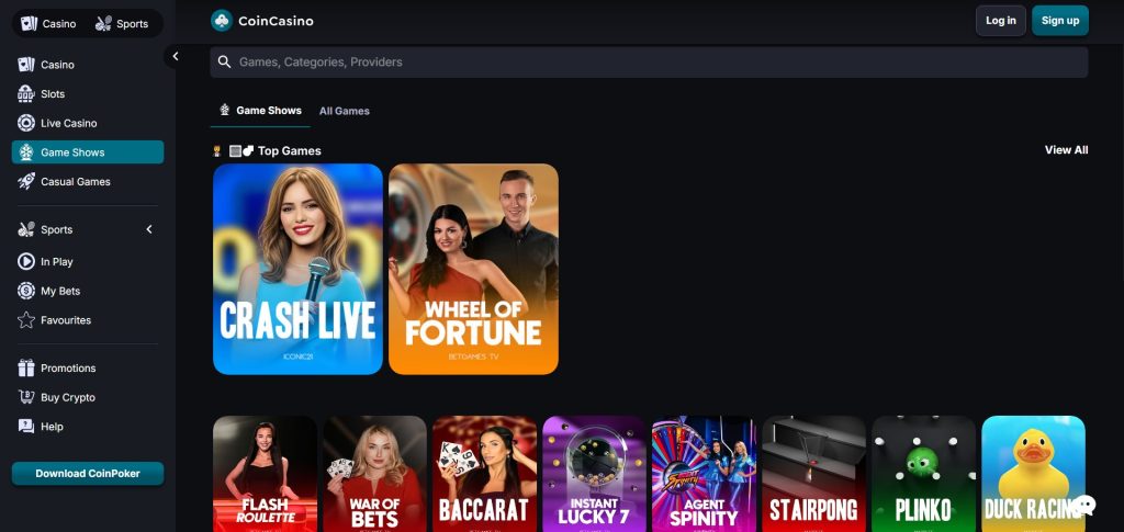CoinCasino is a modern online casino launched in 2024 and owned by Igloo Ventures SRL. The site features a massive selection of over 4,000 games, including slots, live dealer titles, card games, and instant-win options developed by trusted software providers.