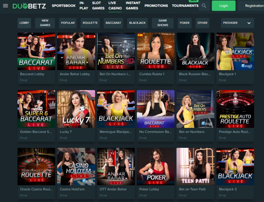 - Live Section at DuoBetz Casino