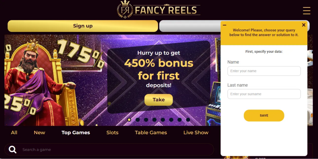 Making a profile at Fancy Reels Web Casino is fast and simple. Just go to the webpage and hit the “Sign Up” link. Next, just type in the info they ask for and you’re all set to play!