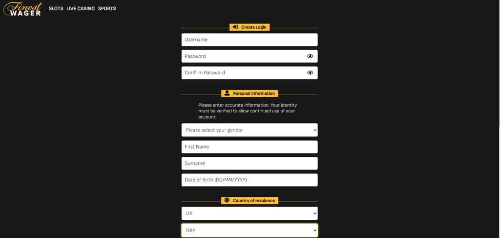 Getting started at Finestwager is simple and only takes a few minutes. Follow the steps below to register and start playing.