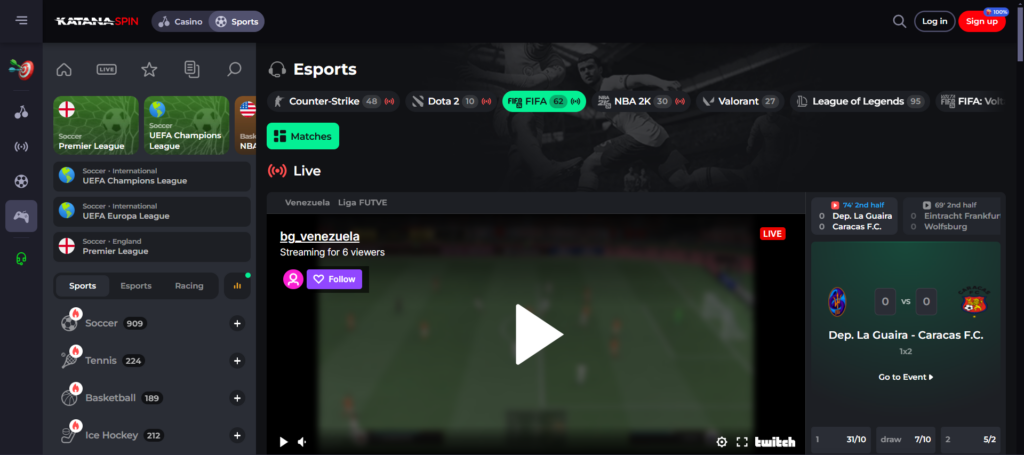 In addition to traditional sports, Katanaspin Casino embraces the growing popularity of esports by offering a dedicated esports betting section. Available Esports Disciplines:
