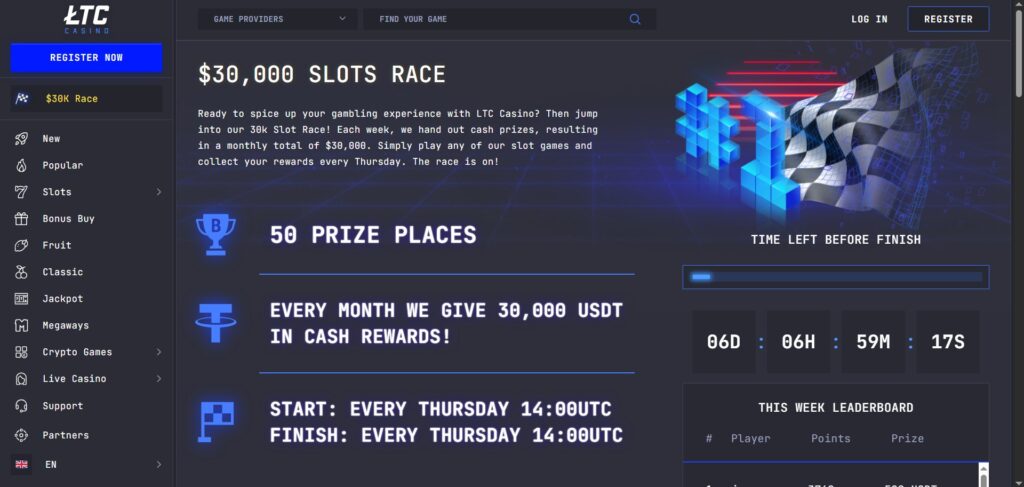 LTC Casino is an online gambling site launched in 2021 and operated by Dama N.V.. The casino focuses on cryptocurrency gaming, allowing players to deposit, play, and withdraw exclusively in digital currencies such as Bitcoin, Ethereum, Litecoin, and Tether. The site also runs regular promotions, including its flagship $30,000 SLOTS RACE. Designed for global accessibility, LTC Casino imposes no country restrictions and offers support in 17 languages, making it appealing to players who value fast transactions, privacy, and variety.