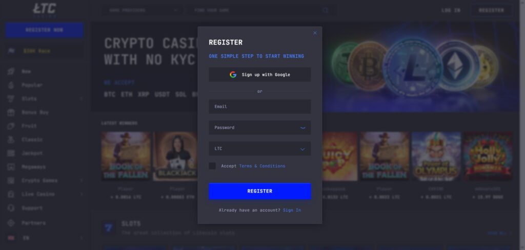 - How to Register at LTC Casino