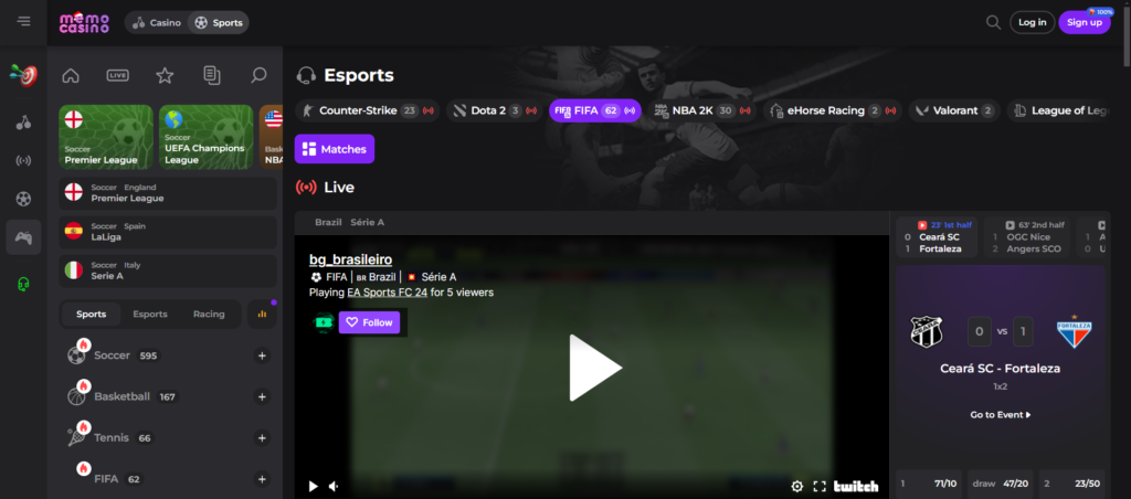 MemoCasino’s sports section has 20 types of sports disciplines so that anyone will find something they like. Popular options include: