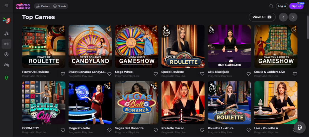 MemoCasino is an online casino that has many games, including sports betting, gambling, and games with a friendly interface. All of them are from the best software developers including NetEnt, Pragmatic Play or Evolution Gaming to guarantee the excellent quality for each user category.