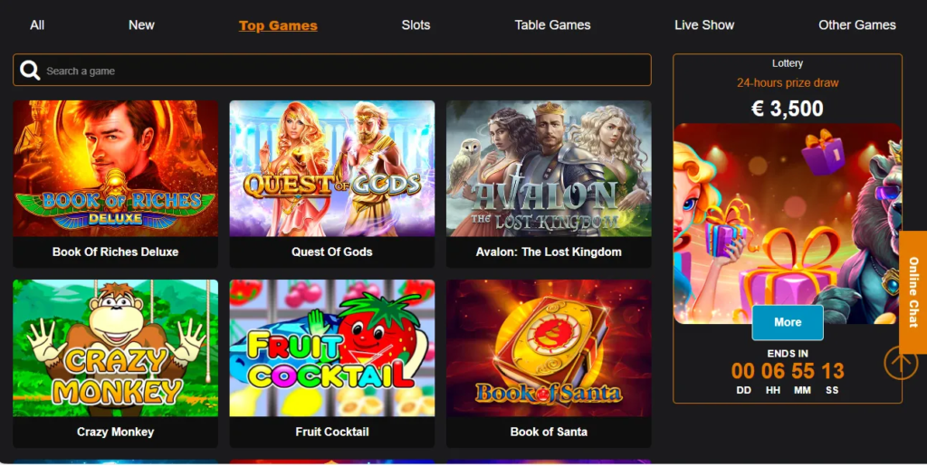 | 🎮 Games Offered | Slots, Table Games, Live Dealer Games, Video Poker, Scratch Cards, Virtual Games, etc. |