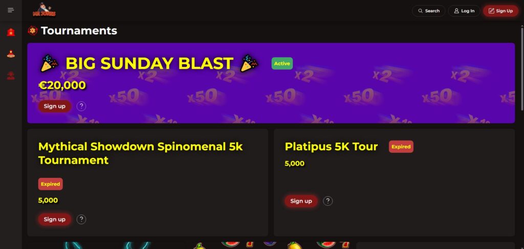 Mr Jones Casino does not offer a sports betting section at this time. The focus here is purely on casino games, such as slots, table games, and live dealer titles.
