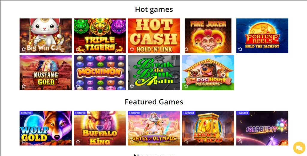 | 🎮 Game Types | Slots, table games, live dealer games |