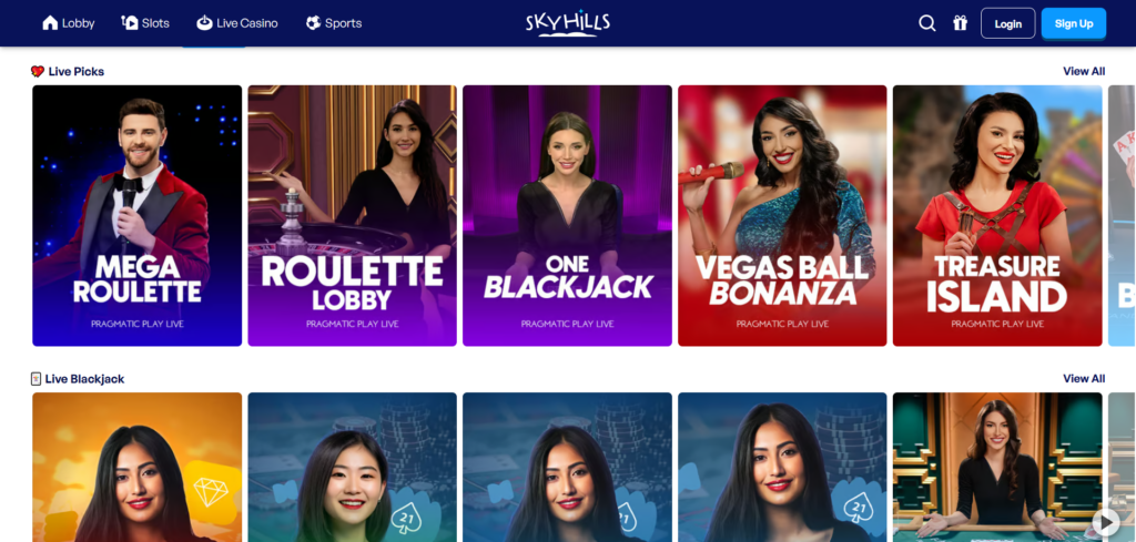- Live Section at SkyHills Casino