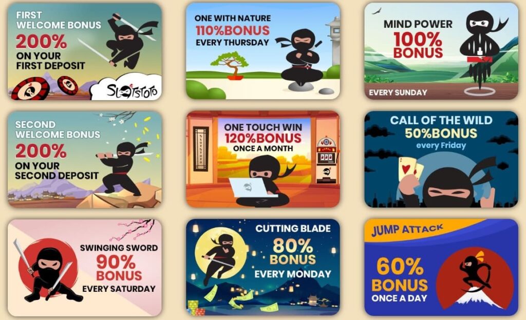 Right now, Slotstoto Casino does not have a no-pay bonus. But, the Slotstoto Casino asks you to join in on many good deals and offers, like extras for your first 2 money-ins: