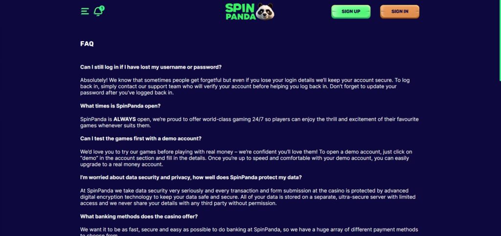 Spin Panda’s customer support team is responsive and helpful, making it easy for players to resolve any issues quickly.