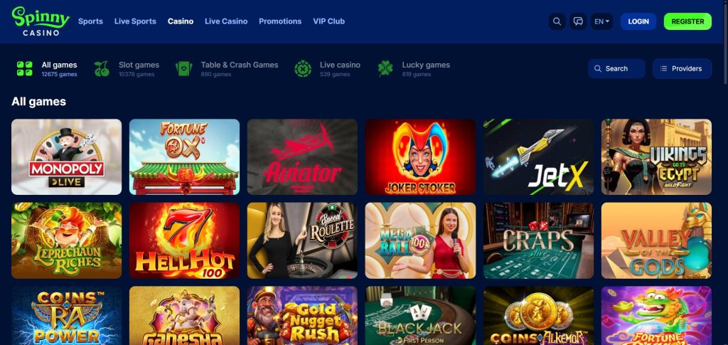 Spinny Casino has a remarkable portfolio of 13,000+ games, giving players access to slots, live tables, and crash games from trusted developers.