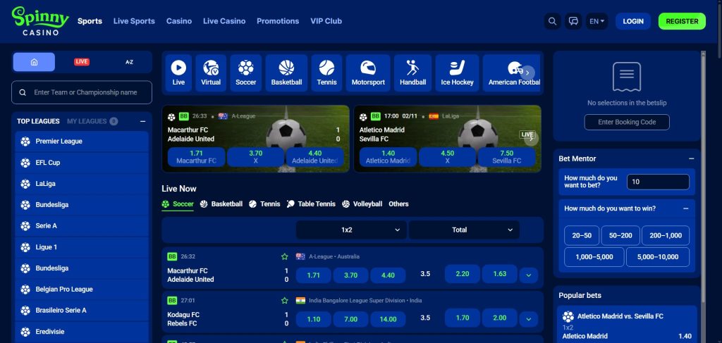 Spinny Casino also features a modern sportsbook with wide betting options covering real and virtual sports. This section is designed for players who enjoy both casino games and sports wagering.