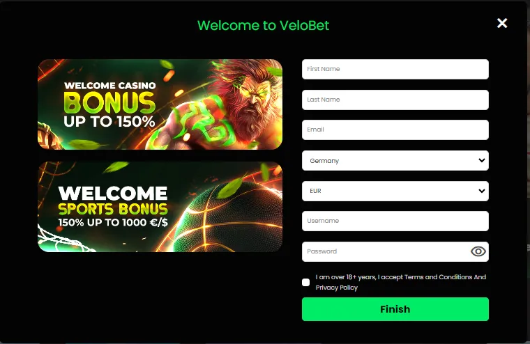 - Hit the “Sign Up” link when you go to the Velobet Casino site.