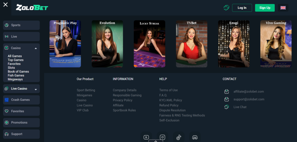 Zolobet’s customer support is available via live chat and by email to support@zolobet.com.